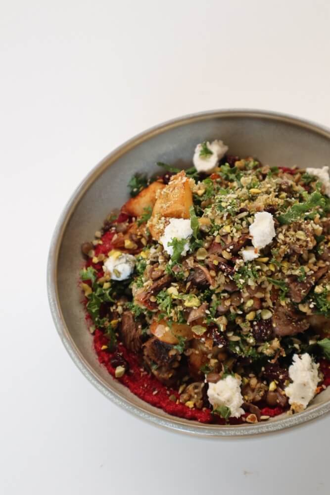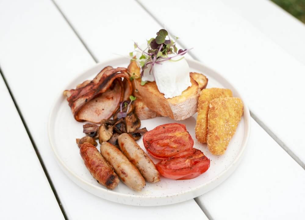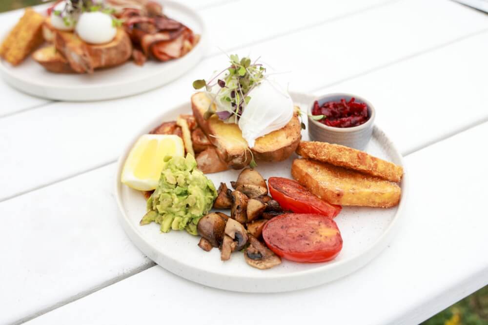 POACHED EGGS, AVOCADO, GRILLED HALOUMI, CARAMALISED ONION + BEETROOT RELISH, MUSHROOM, GRILLED TOMATO, HASHBROWNS, CIABATTA