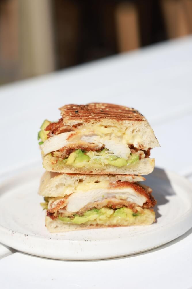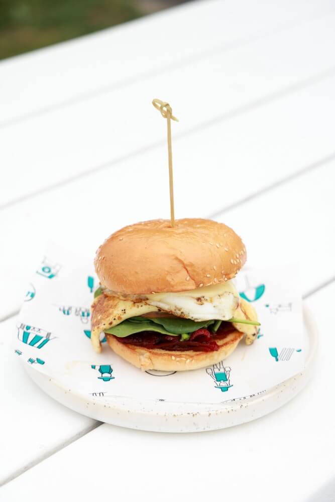 FRIED EGG, GRILLED HALOUMI, CARAMELIZED ONION AND BEETROOT RELISH, FRESH SPINACH, TOMATO, AIOLI, MILK BUN SUPERSIZE W/ AVOCADO AND HASHBROWN 5