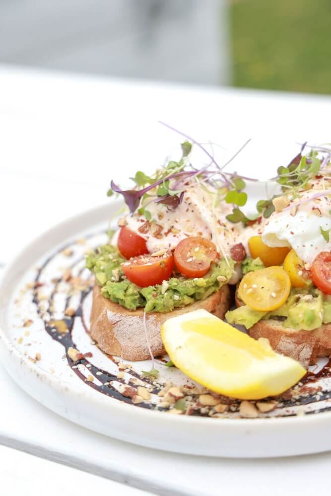 SMASHED AVOCADO, HARISSA YOGURT, HEIRLOOM TOMATOES, STICKY BALSAMIC, ALMOND DUKKAH, POACHED EGGS ON WHOLEGRAIN SOURDOUGH ADD HALOUMI 4 ADD BAROSSA BACON 5